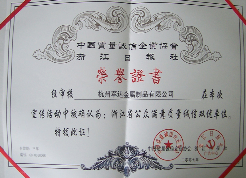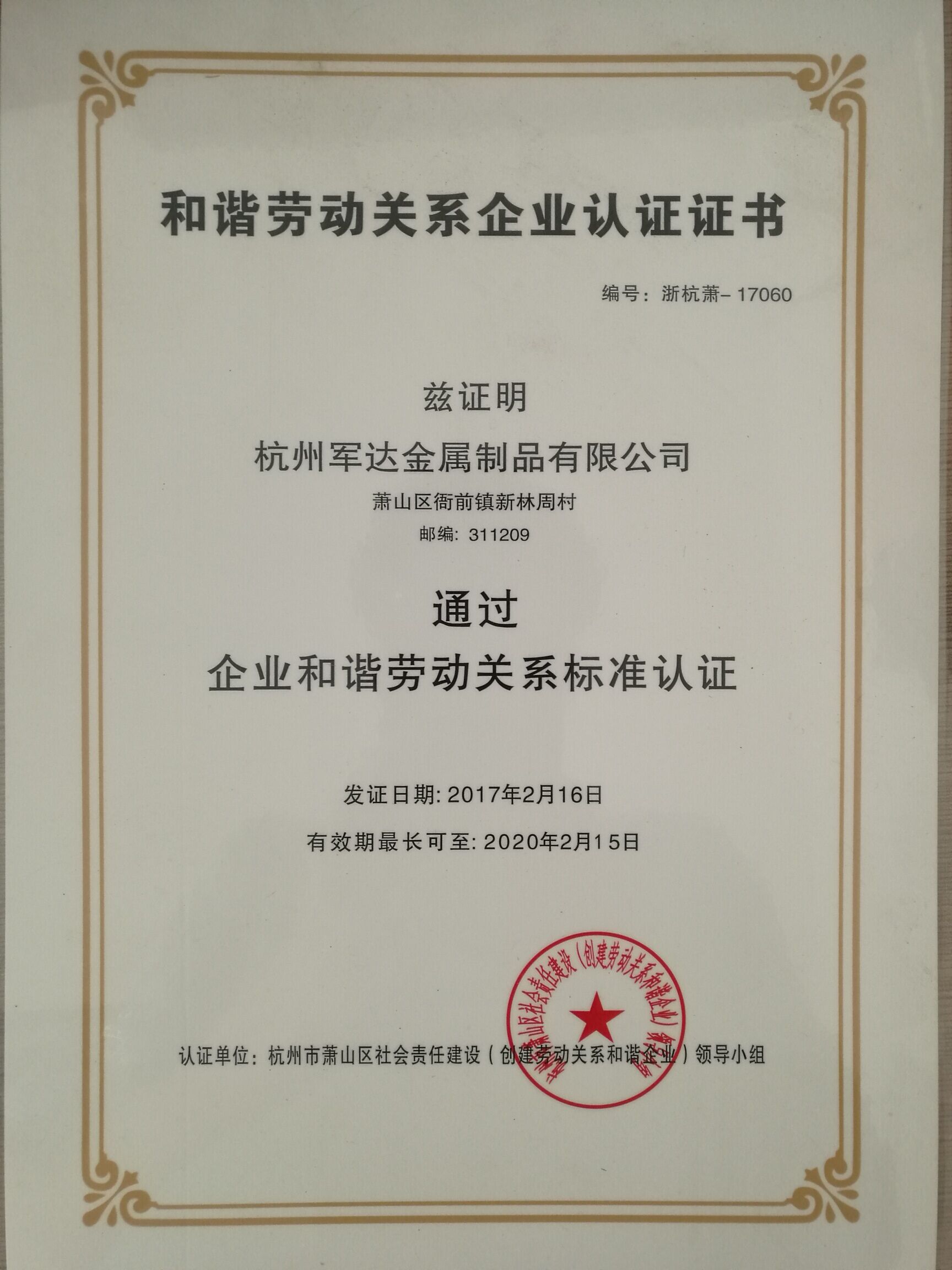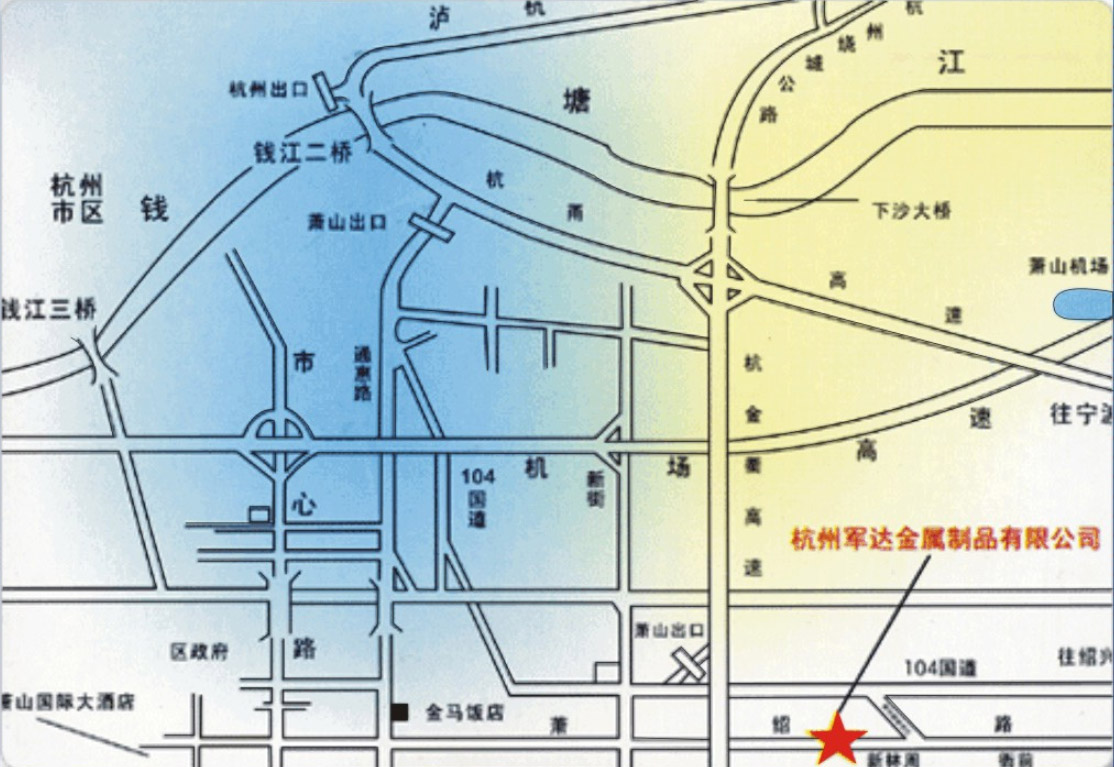 杭州軍達金屬制品有限公司成立于2002年是一家專業生產各種汽配件,彈簧,銷子,齒型墊圈等金屬加工型企業。公司地處杭州市蕭山區104國道旁,距離杭州蕭山好機場僅2公里路程地理位置優越,交通便捷。主要產品標準有:DIN、ANSI、NFE、BS、JIS、GB等。產品遠銷德國,美國,法國,英國,韓國、日本等許多發達國家。 公司十分重視產品質量,引進先進的生產設備,員工技術精湛,經驗豐富,能及時有效地跟進顧客新要求,并以合理的價格、高品質的質量、準時交貨的信譽,為顧客提供優質的產品和滿意的服務。